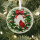 Christmas glass ornament is shown here with a festive wreath and cardinal print.
