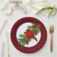 Shown in the 9-inch size with a small buffalo plaid print with fir boughs and red cardinal perched across the centre