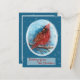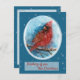Christmas Cardinal Thinking of you Holiday Postcard - A snowy background with dark blue create a lovely space for the Cardinal bird to rest. The bottom of the front says "Thinking of you this Christmas" with snowflakes in a shimmery silver. It's a lovely secular card for the Holiday Season. All of the text is customisable, so you can keep the sentiment or change it out.