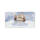 These adorable Christmas gift tag labels features three bunnies all dressed up in their winter clothes singing Christmas Carols in the snow. On the back, there is a blue background with falling snow.