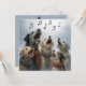 A cheerful group of dogs in vibrant scarves joyfully sing together in a snowy landscape, with musical notes dancing above them to highlight their harmony.