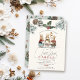 This cute Christmas caroling/children's musical carol party/nativity play/holiday party invitation features three bunnies caroling under hollies, pine leaves, and pine cones. The reverse side features a light sage green background with holiday foliage patterns. Personalise it for your needs. You can find matching products at my store.