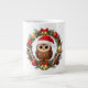 Bring a touch of winter magic to your setting with this charming Christmas crown! Decorated with natural pine apples, candy canes, red and golden balls, and small sparkling bells, it frames an adorable brown owl wearing a Santa cap. The delicate snowflakes on a white background add a sweet and festive atmosphere — perfect for celebrating the holiday season with warmth and style.