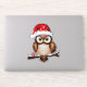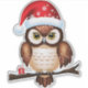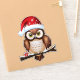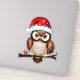 This charming design presents a detailed illustration of a brown and white owl perched on a branch. The owl wears a red Christmas cap with white snowflakes, adding to the festive spirit. His large, captivating eyes attract attention, while a small red gift with a white ribbon subtly lies at the base of the branch, suggesting the generous nature of the holiday season. This design captures the warmth and joy of Christmas by representing this iconic winter bird in a cozy and celebratory setting.