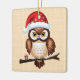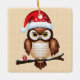 This charming design presents a detailed illustration of a brown and white owl perched on a branch. The owl wears a red Christmas cap with white snowflakes, adding to the festive spirit. His large, captivating eyes attract attention, while a small red gift with a white ribbon subtly lies at the base of the branch, suggesting the generous nature of the holiday season. This design captures the warmth and joy of Christmas by representing this iconic winter bird in a cozy and celebratory setting.