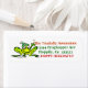 Make Christmas personalised return address labels with this cute cartoon frog with Christmas hat and red and green text colours.