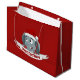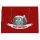 Gift Bag with an illustration of a cute elephant with red Santa cap; great decoration for Christmas holidays, editable template design with custom field for your own text, illustrated by Radka Kavalcova