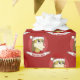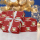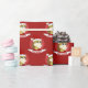 Red Christmas wrapping paper with an illustration of a cute lion with red Santa cap; great decoration for Christmas holidays, editable template design with custom field for your own text, illustrated by Radka Kavalcova