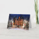 Somewhat spooky castle all lit up for Christmas in a snowy setting Christmas holiday greeting card