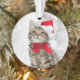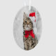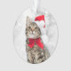 Christmas Cat At Red Santa's Hat Near Christmas Ornament