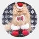 Christmas Orange Persian Cat Garfi dressed as Santa Paws in red boots and matching santa hat and striped bow tie.Garfi loves to dress up in the different outfits and is always picture perfect.This sticker is perfect for decorating your Christmas cards, gifts, or any other creative project with a touch of whimsy and cuteness.