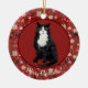 Painting of a black and white tuxedo furry cat, flowers in background. For all cat lovers, Merry Christmas!