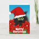 Christmas Cat in Santa Hat Amid Poinsettia Holiday Card