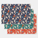 Fun cheerful Christmas Gift Wrapping Paper for Cat and Animal Lovers! Cute Cats in different poses with festive Christmas green and Christmas decorations. On festive modern elegant Wrapping Paper in dark blue, bright red and pine green.
