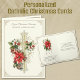 Featuring a beautiful vintage image of a gold cross overlaid with a red poinsettias and Christmas flowers. Another beautiful Christmas bouquet with a rosary is inside with a scripture verse below. All text can be modified.