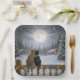 Christmas Cats Cuddling On a Snowy Fence Paper Plate