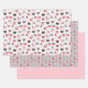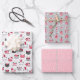 Cute Christmas wrapping paper sheet set of three coordinating holiday designs: Christmas Cats With Santa Hats, Peppermint Candy Baubles, and Pink Retro Snowflakes and Stars. Original artwork by Marketa Stengl.