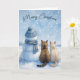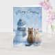 Christmas Cats Sitting With a Snowman In a Field Card