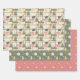 The set contains three patterns : Christmas tree with presents, Chritmas ornaments and stralight with a sage green, light pink and cream color palette