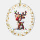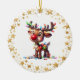 This ceramic Christmas Ornament is shown in a round shape with a festive holiday Rudolph print.