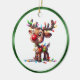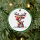 This ceramic Christmas Ornament is shown in a round shape with a festive holiday Rudolph print.
