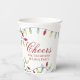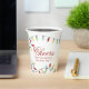 Bring festive joy to your Christmas celebrations with this cute, whimsical disposable coffee cup featuring cheerful holiday string lights and a playful cheers design. Perfect for holiday parties and gatherings, this fun custom party supply adds warmth and charm to your event. It is ideal for serving hot cocoa, coffee, or seasonal drinks at any Christmas party.
