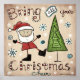 Cute pattern filled with Christmas-time elements reminds you to bring your Christmas Cheer. Dancing Santa surrounded by snowballs and snowflakes, little white stars and a green pine tree complements the rustic lined background. The hand-drawn elements tie it all together to bring about that homey feeling. Original design by Christie Black of Creations from the Heart.