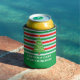 This is a great gift to give to your guests at your annual ugly Christmas sweater party or family get together. A funny beer cooler with the text "Christmas Cheer Starts With Beer. The design features a Christmas tree on a candy cane striped background.