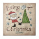 Cute pattern filled with Christmas-time elements reminds you to bring your Christmas Cheer. Dancing Santa surrounded by snowballs and snowflakes, little white stars and a green pine tree complements the rustic lined background. The hand-drawn elements tie it all together to bring about that homey feeling. Original design by Christie Black of Creations from the Heart.