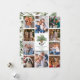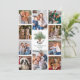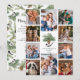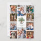 This unique photo collage Christmas card is perfect for showing off your family photos from the past year. A cute hand-painted chickadee is perched on a pinecone in the centre of this Christmas card, surrounded by 10 photos, on a simple white background. On the back is a heartfelt message of best Christmas wishes, that can be easily personalised.