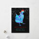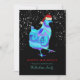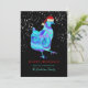 Delight your chicken lover friends with this adorable colourful cute hen wearing a Santa hat on a black background with in falling snow. This funny festive poultry themed Christmas card is easy to personalised using the typography script template. Original modern minimalist artwork by artist Catherine Sweetman