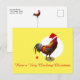 The Christmas postcardcard is in yellow with a chicken wearing a Santa hat .