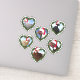 Great quality cut-out stickers that sticks well and easily removed without sticky residue. The size I ordered (6"x6") is a perfect size for envelopes. I ordered Matching Christmas Chickens Cards, too! The printing is bright and clear , as shown on the website. The contour cuts around the design were close to the edge of the Christmas Wreaths. The photos don't do the product justice...my camera phone is not very good.