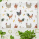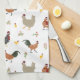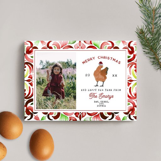 Pattern featuring illustrations of chickens and chicks with santa hats, scarves, holly, and candy cane