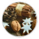 Design features a Christmas-themed photograph of cinnamon sticks and stars, as well as pine cones and walnuts in the shell.