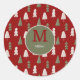 Christmas Classic Trees Custom Family Monogram Red Round Sticker