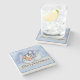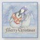 CHRISTMAS COASTER. ADORABLE PENGUINS DRESSED FOR CHRISTMAS WITH HATS AND SCARVES. THEY HUG ON A COLD WINTER DAY FOR CHRISTMAS TIME. THE BACKGROUND HAS SNOWED TREES AND SNOWFLAKES IN LIGHT BLUE.