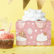 A Pink Background With A Pattern Of Christmas Cupcakes And Gingers.