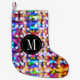 This Christmas stocking featuring colourful bokeh lights is a bright and festive way to celebrate the holiday season! Personalise with the monogram or initial of your choice. The font and colour of the text can be changed to fit your preference.