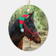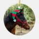 Adorable young horse colt sports an elf hat and red halter to bring Christmas cheer to any horse lover.