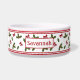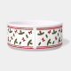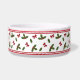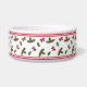 Destei's original festive pattern of green and red Christmas Holly / Common Holly plants together with red bows. The design is framed by red colour borders on the top and bottom. There is also a personalizable text area for a name or other custom text. This festive design featuring a classic red and green Christmas colour scheme is ideal for the Holiday season or for pets named "Holly", for example.