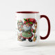 This super cute coffee mug features two whimsical Christmas gnome Chefs. They're all decked out in their holiday finest and have been baking Christmas cookies and Gingerbread houses. In the center you personalize it with your name and then it says Head Chef - Christmas Cookie Baking Crew in red and green. The inside is shown in red but there are other colors available as well as other styles of mugs.