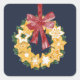 Christmas Cookie Wreath with Blue Grey Background Square Sticker