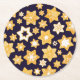 Christmas Cookie Wreath with Navy Blue Background Round Paper Coaster