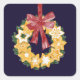 Christmas Cookie Wreath with Navy Blue Background Square Sticker