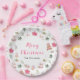 This elegant and festive plate features watercolor cake stands, pink poinsettia flowers, gingerbread cookie jar, holly and foliage. The text combines handwritten script and sans serif fonts for a stylish and modern look. This is perfect for Christmas parties.