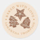 Custom sticker for the bakers and cooks that like to bake/cook and gift to others, or for those who do that professionally. There is illustration of holiday cookies in the middle. There is text that goes around in circle that says "baked with love". You can customise this product by adding your own name or business name.