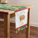 Holiday Christmas table runner with a festive Christmas cookie and candy pattern on green with red and white contrasts. Changeable text for you to edit with your own details in the "Personalise" text editor. Coordinates with paper plates and other mix and match designs in the Christmas Kitchen collection at Pinkladybugs on Zazzle.