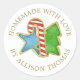 This cute and whimsical design features Homemade with love, Christmas cookie famous whimsical, Christmas cookies cute homemade, cute simple homemade cookies, homemade food labels, bakery baked goods baking, simple whimsical fun packaging, frosted frosting sprinkles, holiday cutout cookies, whimsical cute cookie cutter, holiday baking sticker label, artwork by laura lacina