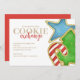 This design features a Christmas cookie exchange party, Christmas holiday party cute fun, cookie sugar sweet exchange cool, trendy stylish whimsical watercolor, modern exchange party cookies, trendy winter holiday celebration, cute sweets modern typography, sugar cookies swap festive whimsical, a fun baking decorating candy cane, Christmas tree star sprinkles frosting, baker cook cooking cookie making With QR code for map and directions URL link and map icon